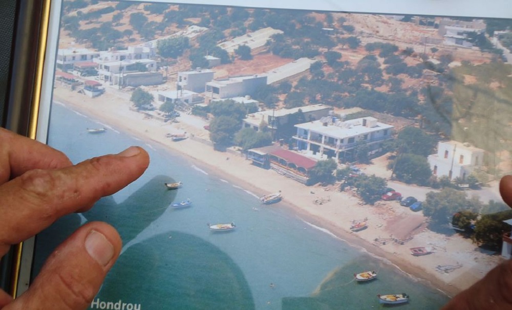 Η φωτογραφία που βλέπετε παρακάτω, χρησιμοποιήθηκε σε παλαιότερο ρεπορτάζ της "Ηχώ της Βιάννου" και ανήκει στον κ. Μπριτζολάκη. Πρόκειται για αεροφωτογραφία, ακριβώς πάνω από το κατάστημα που διατηρεί, όπου φαίνεται μια παραδεισένια παραλία πολλών μέτρων. Αυτή τη στιγμή, ο εξωτερικός χώρος του καταστήματος, όπως πολλά άλλα σημεία παραλιακά, βρίσκεται κυριολεκτικά στον αέρα.