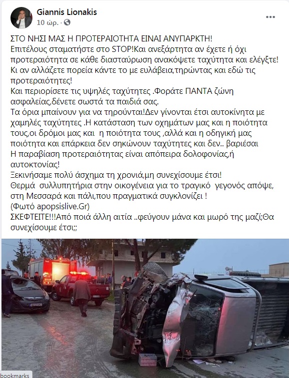Το δικό του σχόλιο για τη θλιβερή αυτή είδηση έκανε ο Πρόεδρος του Εθελοντικού Συλλόγου Πρόληψης Τροχαίων Ατυχημάτων, γράφοντας: