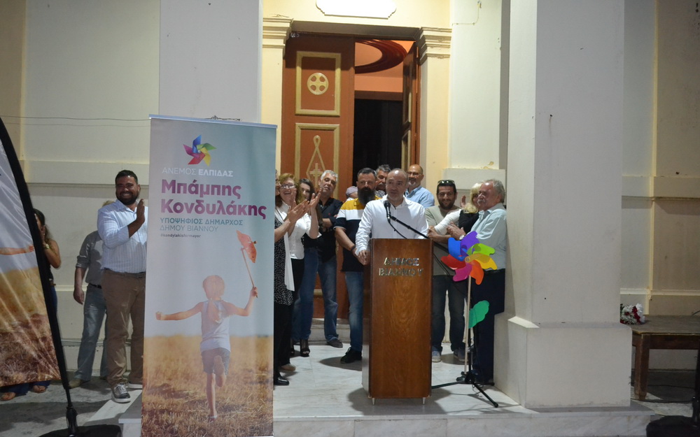 Ολοκληρώθηκε η κεντρική προεκλογική ομιλία του Μπάμπη Κονδυλάκη, στην πλατεία του Μιχαήλ Αρχαγγέλου, στην Άνω Βιάννο.