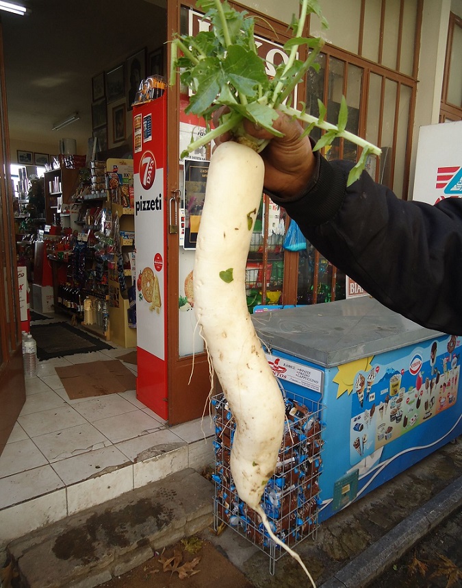 Μονάχα λίγη κοπριά σκόρπισαν στην ευλογημένη γη κι αυτή, ανταπέδωσε πλουσιοπάροχα πεντανόστιμα λαχανικά και βρουβερικά. Το ραπάνι της φωτογραφίας που σας παραθέτουμε είναι σχεδόν μισό μέτρο! Μάλιστα το δώρισαν σε κάποιο φίλο τους κι εκείνος μας είπε: «Δεν υπάρχει καμιά περίπτωση να το κόψω γιατί το λυπάμαι»!