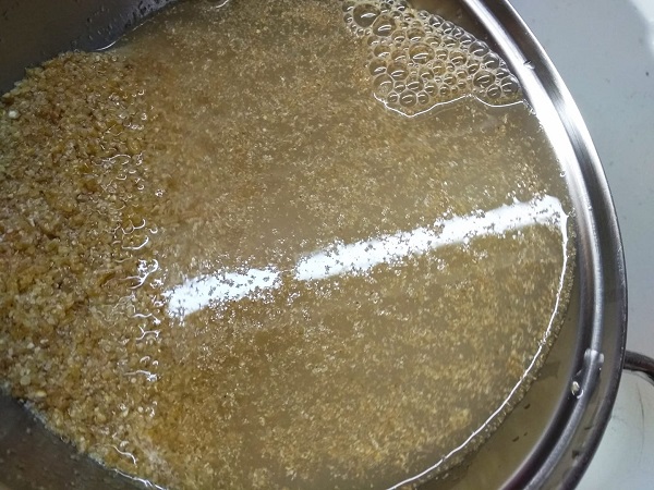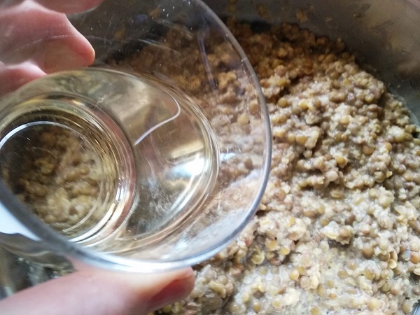 Όσο βράζουν οι φακές βάζουμε το σιτάρι (πλιγούρι) σ’ ένα σκεύος με νερό, το αναδεύουμε να βγουν στη επιφάνεια όσα υπολείμματα από άχυρο υπάρχουν και γέρνοντας το δοχείο ρίχνουμε το νερό (δεν ξεπλένουμε το πλιγούρι μέσα σε σήτα).