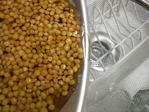 Βράζουμε για πέντε (5) λεπτά τις φακές και τις σουρώνουμε για να φύγει το πρώτο νερό που είναι σκούρο.
