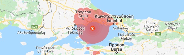 Ισχυρή σεισμική δόνηση, εντάσεως 5.7 Ρίχτερ σημειώθηκε λίγο μετά τις 14:00 στη θάλασσα του Μαρμαρά, κοντά στην Κωνσταντινούπολη.