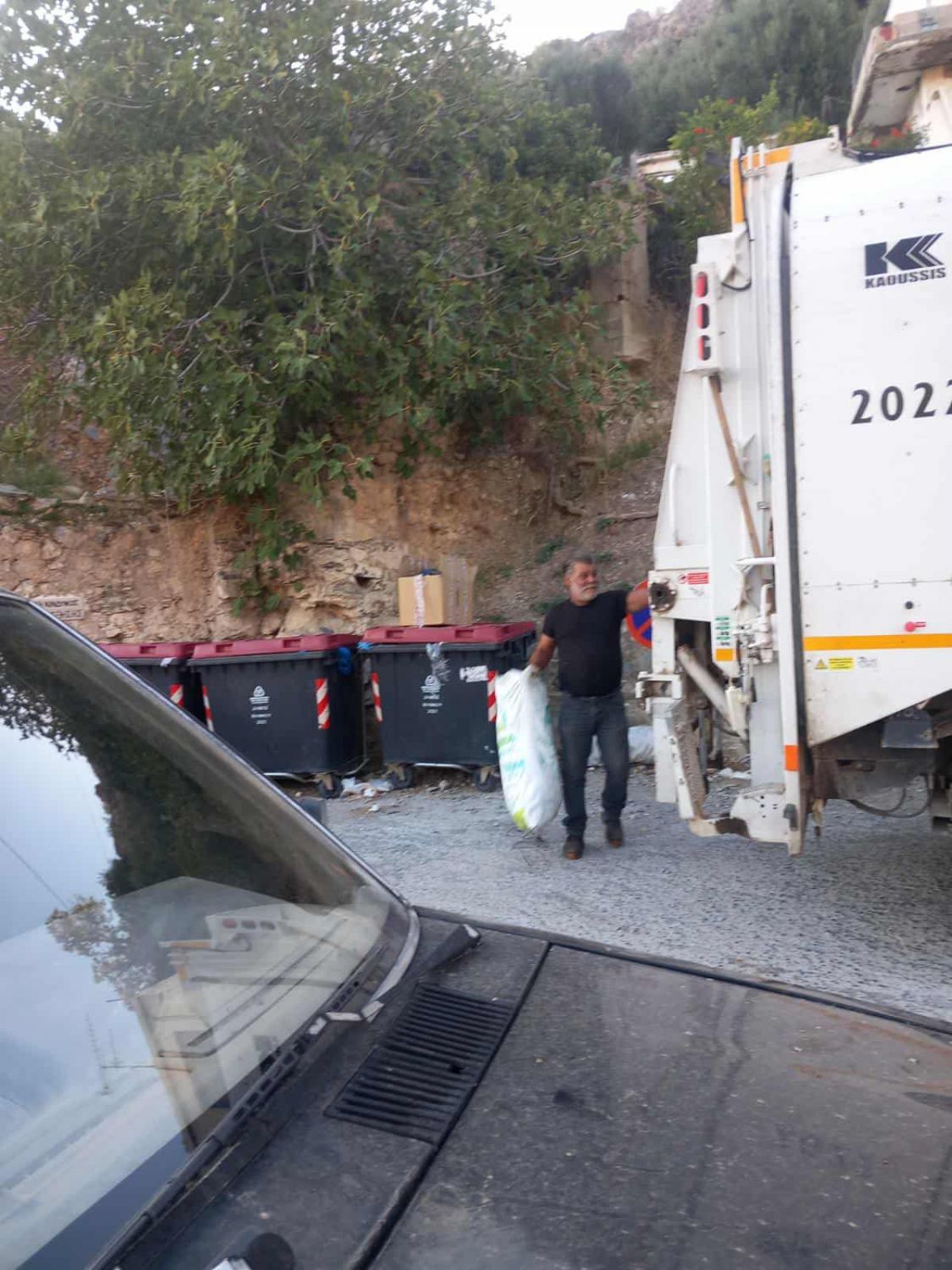 Στο ίδιο μήκος κύματος και ο Πρόεδρος της Κοινότητας Μανώλης Μπριντάκης, ο οποίος, πριν λίγο κλήθηκε για να επαναδιαπιστώσει την απροθυμία των ιδιοκτητών Ι.Χ. που εντελώς αδικαιολόγητα επιμένουν να σταθμεύουν τα αυτοκίνητά τους στο συγκεκριμένο τμήμα του δρόμου. «Αναγκαστήκαμε να μετακινήσουμε τους κάδους σε μεγάλη απόσταση, αλλά, δυστυχώς, κάποιοι δεν εννοούν να συνεργαστούν», μας είπε ο κ. Μπριντάκης συμπληρώνοντας ότι «ο δρόμος είναι στενός και το όχημα που ζυγίζει 20 τόνους καθιστά άκρως επικίνδυνη τη διέλευσή του λόγω της στενότητας».