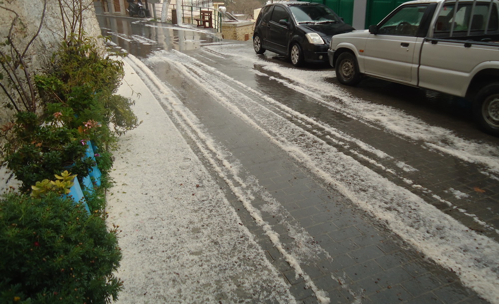 Η σφοδρή χαλαζόπτωση λοιπόν, σε συνδυασμό με την παρουσία της αφρικανικής σκόνης στην ατμόσφαιρα, συνέθεσε ένα εντελώς πρωτόγνωρο σκηνικό!