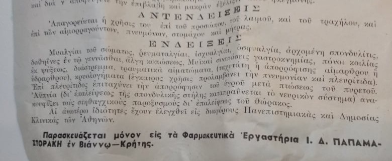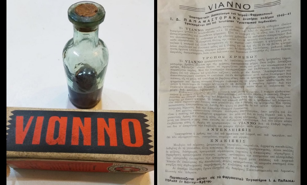 Κι όμως, στα τέλη μιας πολύ δύσκολης δεκαετίας για την περιοχή της Βιάννου, της δεκαετίας του 40', λειτουργούσε στην περιοχή φαρμακευτικό εργαστήρι(!) το οποίο παρήγαγε φάρμακο εγκεκριμένο από το Ανώτατο Υγειονομικό Συμβούλιο της Ελλάδας!