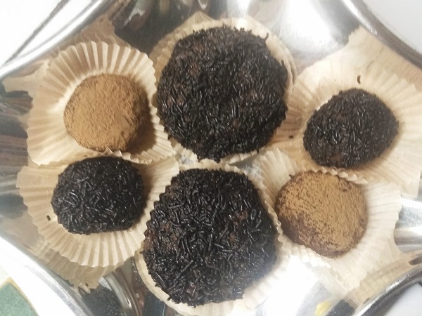 Φτιάχτηκαν υπέροχες τρούφες, που άλλες τυλίχτηκαν σε κακάο, άλλες σε τριμμένο καρύδι κι άλλες στην κλασσική τρούφα σοκολάτας και που τελικά, αφού έμειναν μια βραδιά σκεπασμένες στο ψυγείο και το επόμενο πρωί δοκιμάστηκαν, πέραν της ευχάριστης έκπληξης της επιτυχίας τους, μου έκρυβαν μια ακόμη ευχάριστη κι ανέλπιστη έκπληξη: