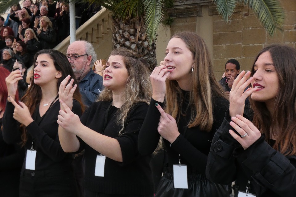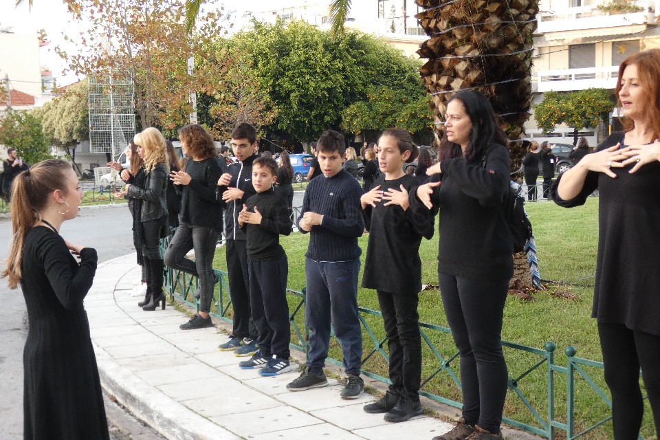 Μέλη της ομάδας, μαζί με πολλούς εθελοντές κάθε ηλικίας, ξεκίνησαν από τις 3 το μεσημέρι τις πρόβες στο αίθριο του κτηρίου της Αντιπεριφέρειας, προετοιμάζοντας το αγαπημένο τραγούδι «Είσαι εσύ ο άνθρωπός μου», μαθαίνοντας να το ερμηνεύουν στη νοηματική γλώσσα.